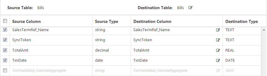 For example, the Accounts table in QuickBooks Online contains such a column. Replicating the table: