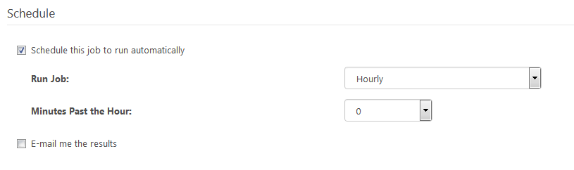 To schedule a job, select the desired job. Under the "Schedule" section, check the "Schedule this job to run automatically" box. Last, select the appropriate interval.