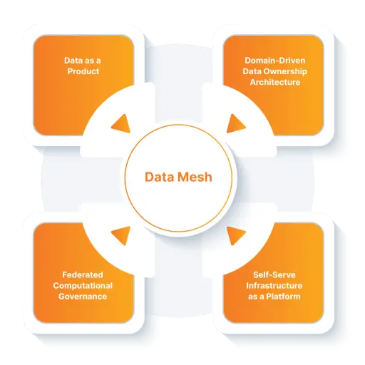 To enable the paradigm shift of moving beyond the traditional monolithic approaches, the data mesh is based on four key pillars.