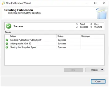 - Configure publication properties, such as snapshot or transactional replication