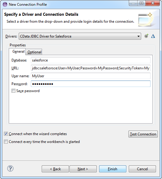 DriverManager.getConnection("jdbc:linkedin:user=myuseraccount;password=mypassword;");