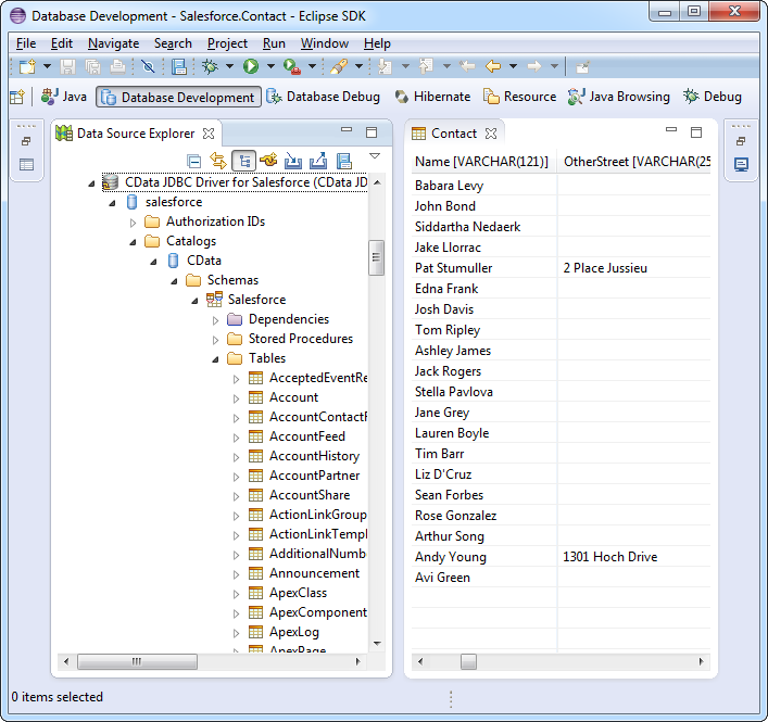 The data model exposed by our JDBC Drivers can easily be customized to add or remove tables/columns, change data types, etc. without requiring a new build. These customizations are supported at runtime using human-readable schema files that are easy to edit.