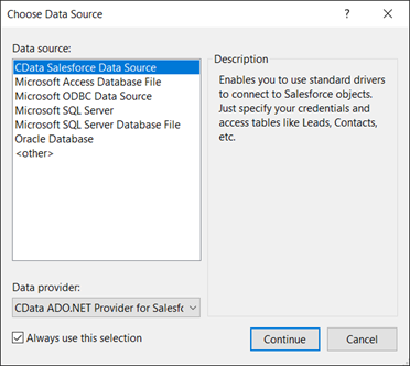 It is important to note that although this article references the Salesforce ADO.NET Provider, the same principles herein can be applied to any of the 250+ data sources that we support.