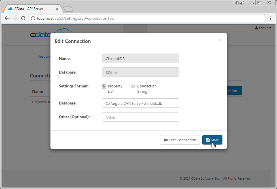 If you have not already done so, you will need to download the CData API Server. Once you have installed the API Server, you will need to run the application, configure the application to connect to your data (the instructions in this article are for the included sample database), and configure the application to create a REST API for any tables you wish to access in your SPA.