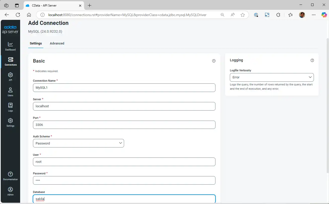 - Host CData API Server locally.