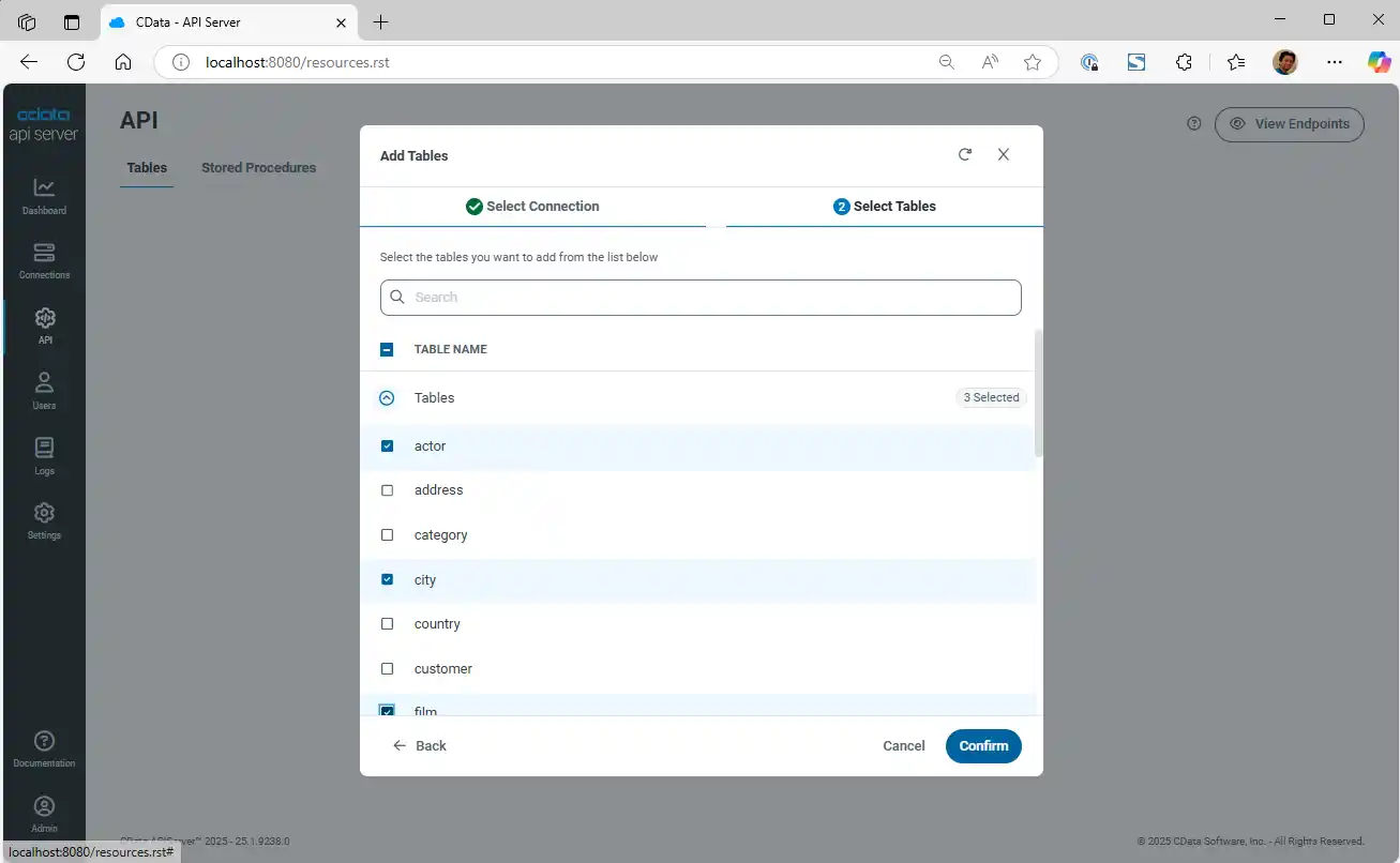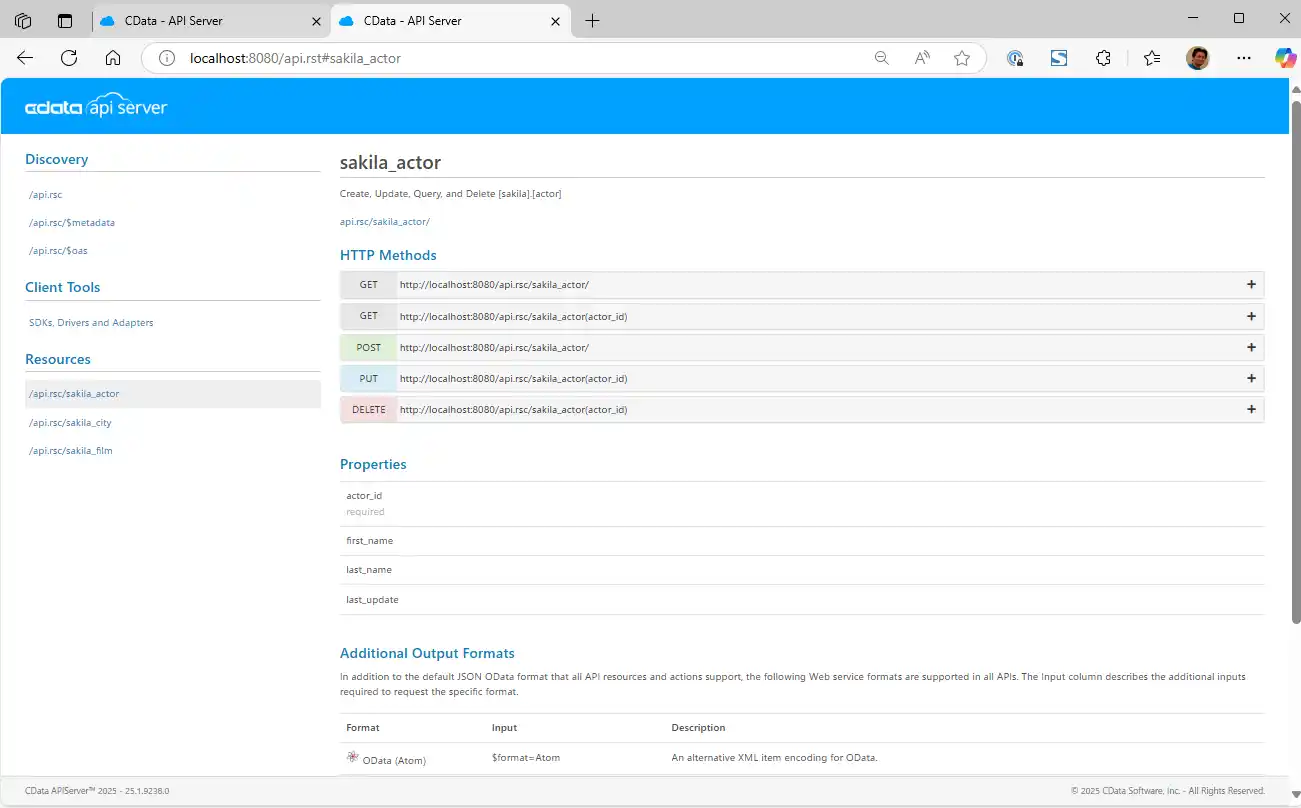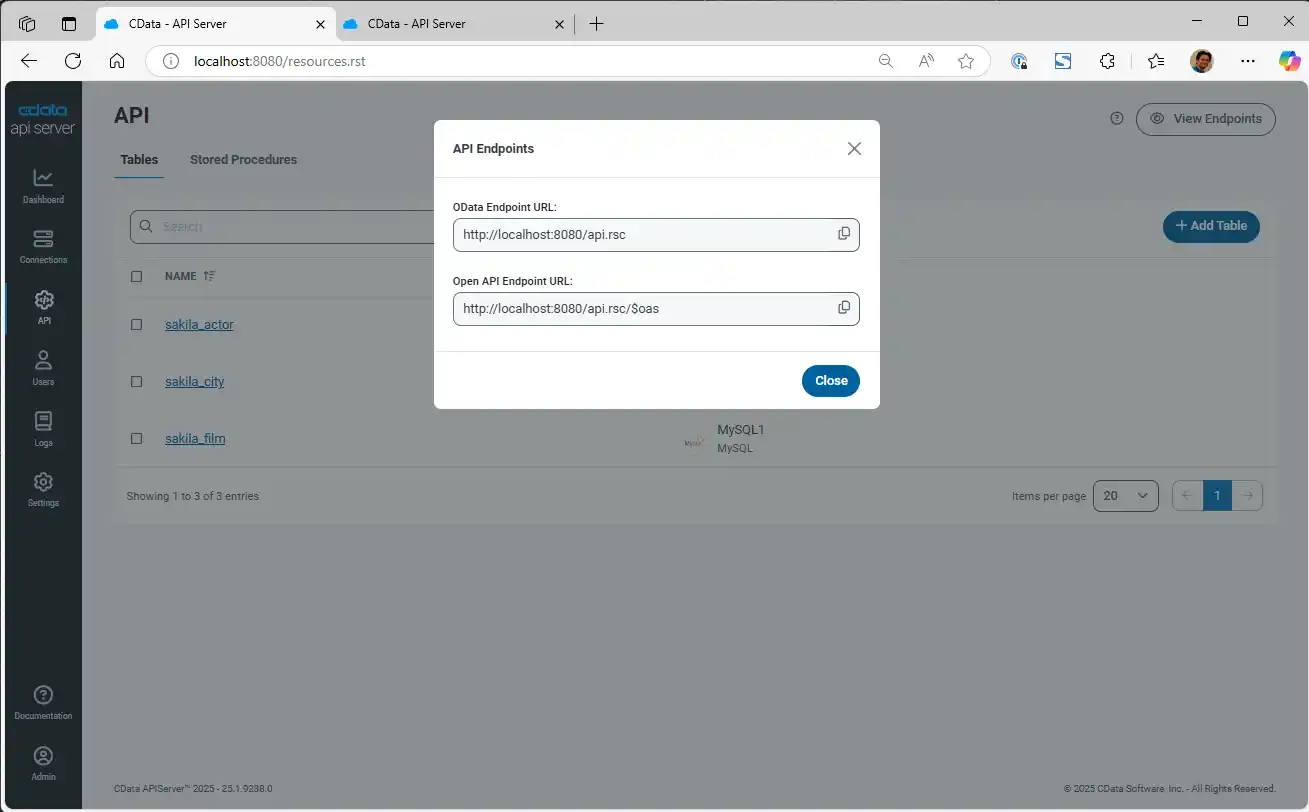 - URL: OData Endpoint URL from CData API Server, that looks like http://localhost:8080/api.rsc