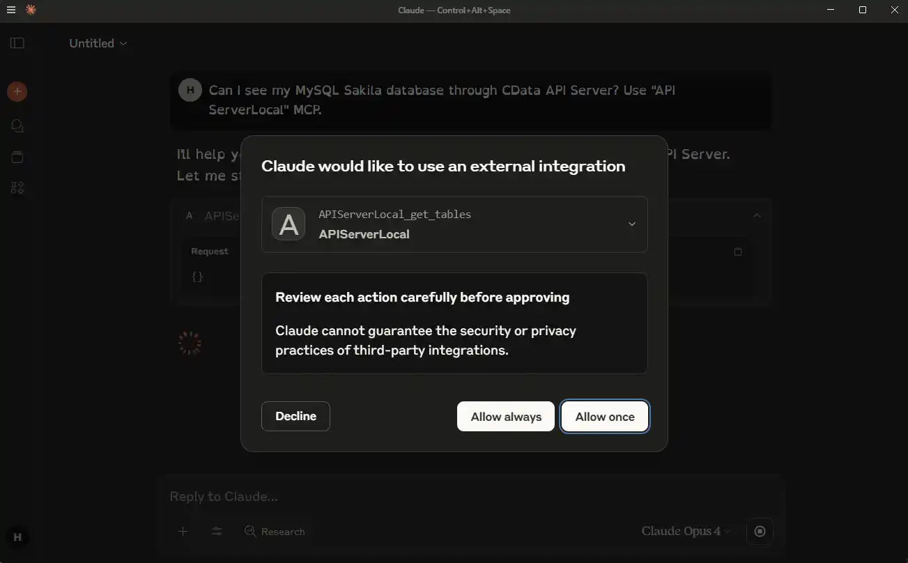 Click the Tools icon and you will find CData API Server MCP. Enable the tools that you want to use.