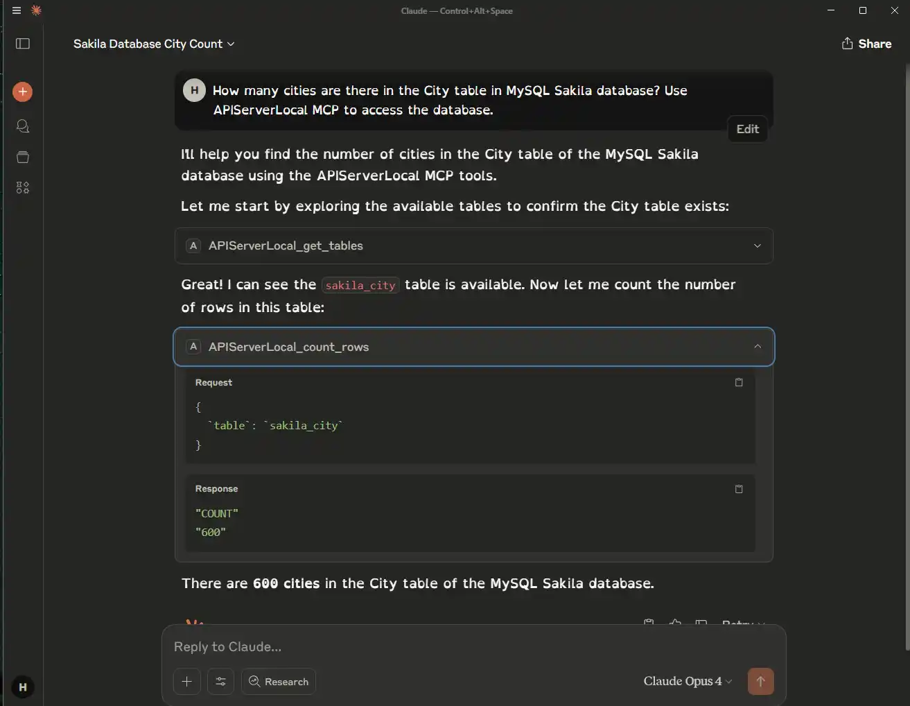 - Through the MCP Server, Claude can GET data, or filter and count data as you want from your natural language queries.
