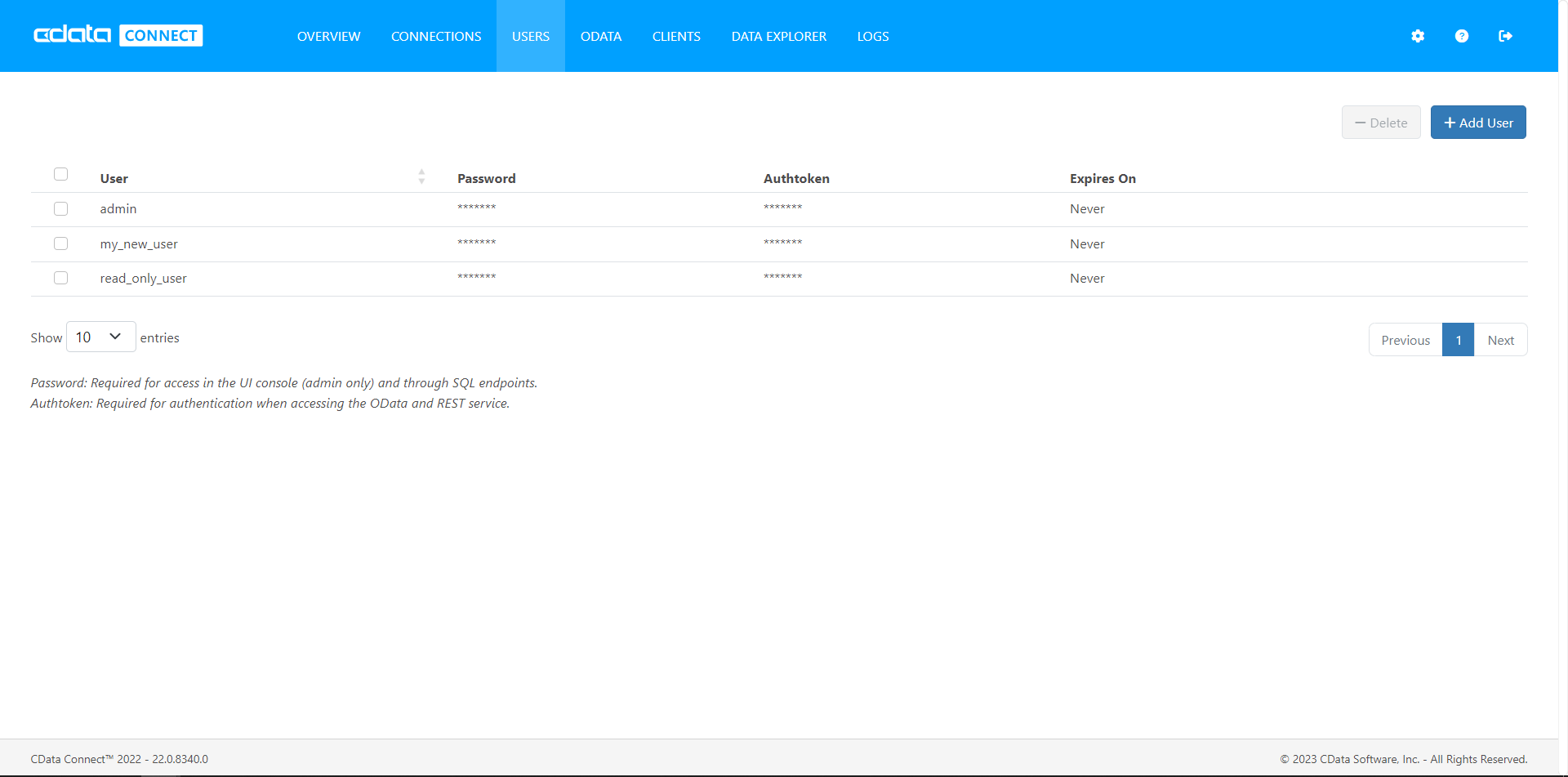 As you can see in the screenshots, we already had a user configured with read and write access. For this article, we will access Connect Server with the read-only user, using the associated authtoken.