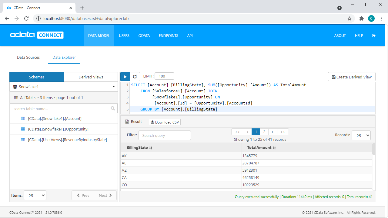 Try them now for free →CData Connect: Derived Views and Query Federation