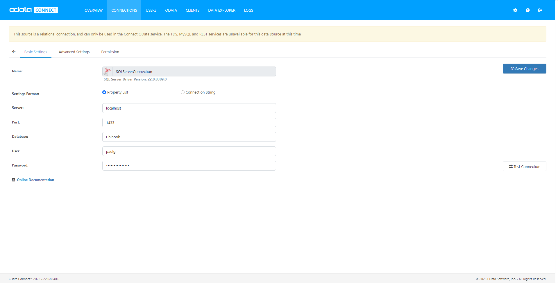 Having configured a connection to the database, created a user, and added resources to Connect Server, you now have an easily accessible REST API based on the OData protocol for those resources. Below, you will see a list of tables and the URLs to access them. For more information on accessing the tables, you can open the API page from the navigation bar. To work with React, you can append the @json parameter to the end of URLs that do not return JSON data by default.