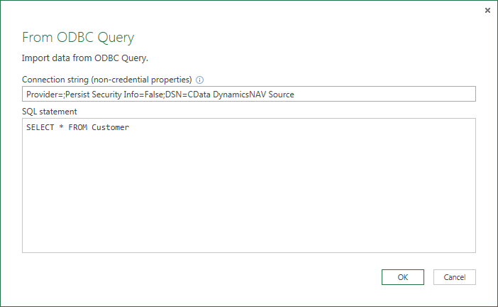 Provider=;Persist Security Info=False;DSN=CData DynamicsNAV Source