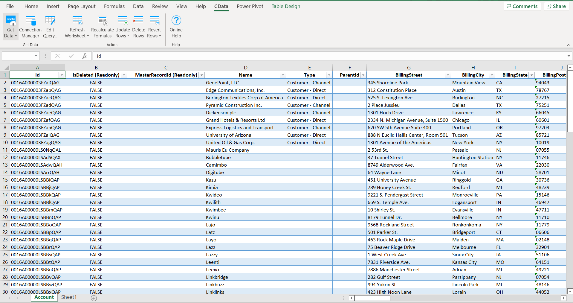 Finally, we have an Excel spreadsheet with Salesforce data!