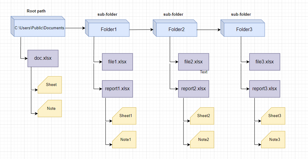 - URI: Specifies the location of the root folder for your file, e.g., 'C:\Users\Public\Documents\Excel-Files\'.