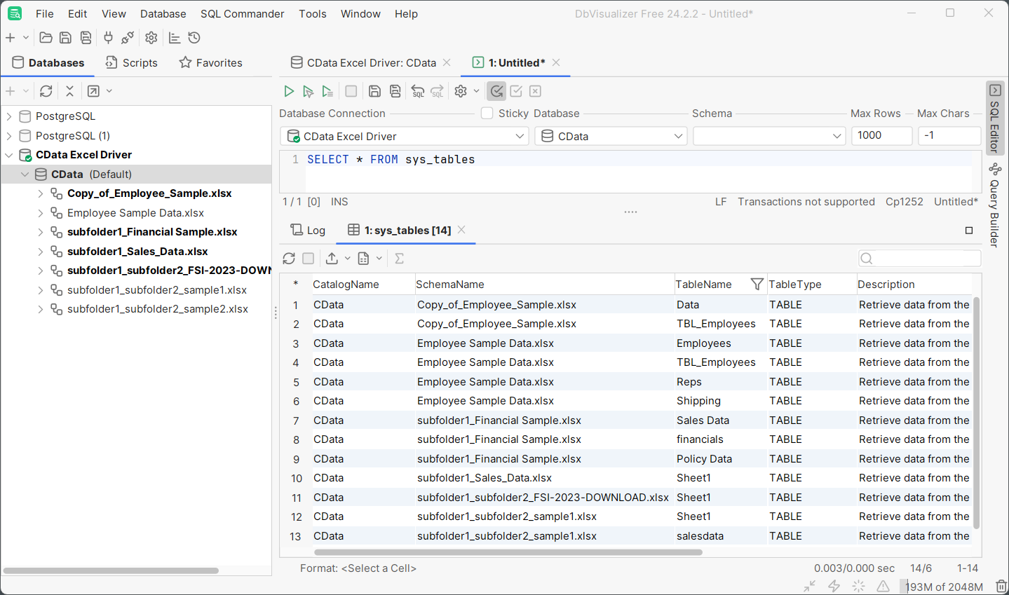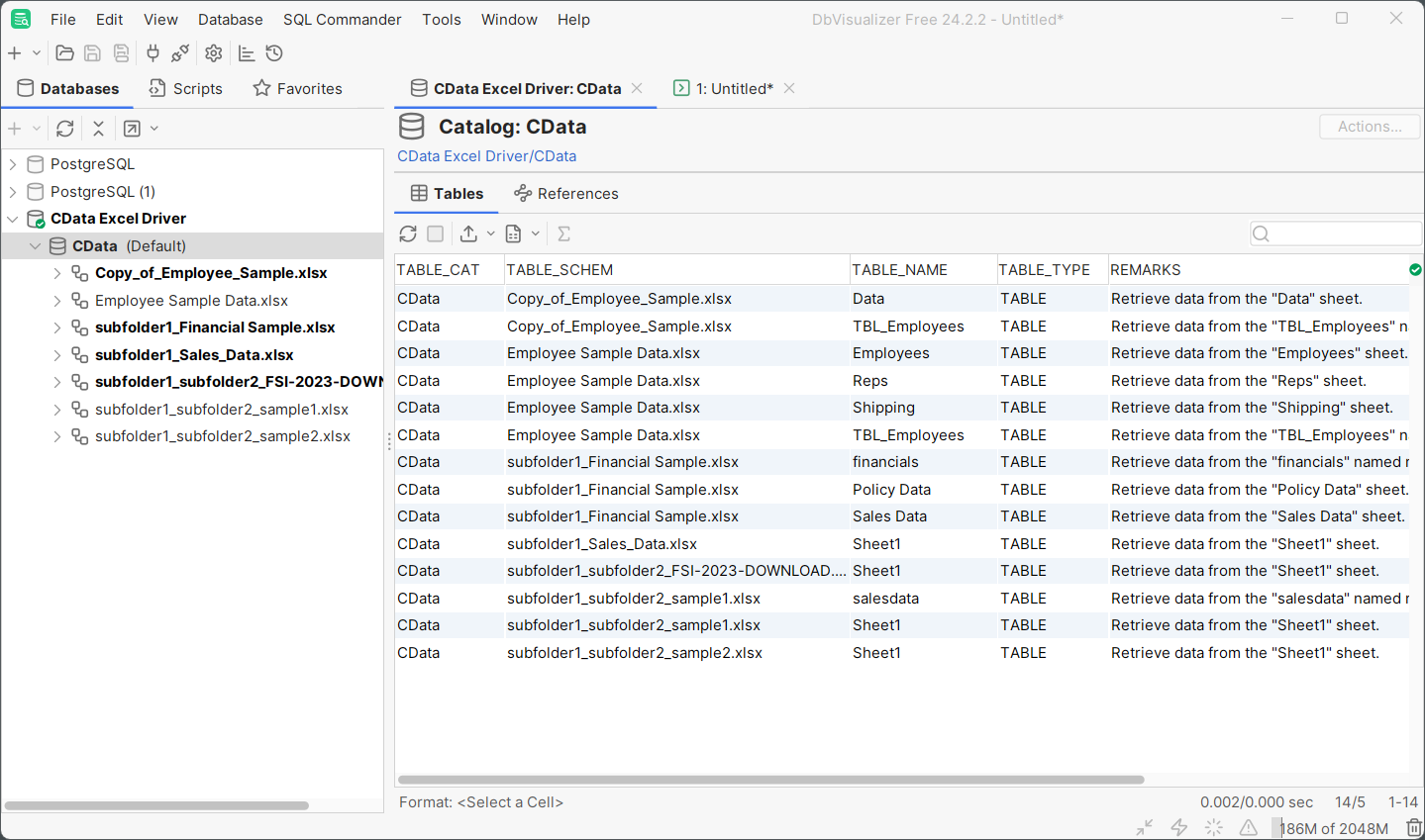 In this guide, we will explore how to retrieve and access data from Excel files located within sub-folders of a resource or data source root folder. While this article uses the CData JDBC Driver for Excel and DBVisualizer, the principals apply to any of the CData Drivers and Connectors for Excel and any data tool.