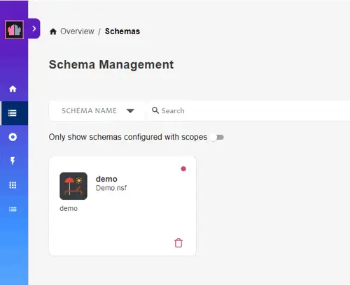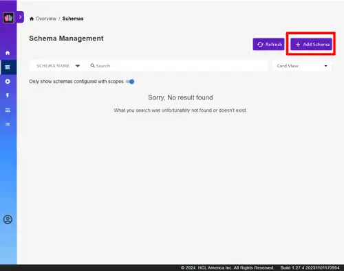 - Navigate to Schema Management and click +Add Schema.