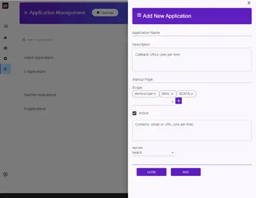 - Use the interface to configure schemas, scopes, and OAuth applications.