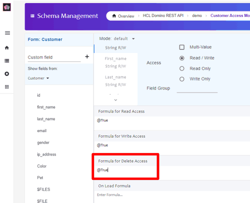 Important: Before deleting a document, ensure that the Formula for Delete Access in the target Form/Mode is set to "@True".