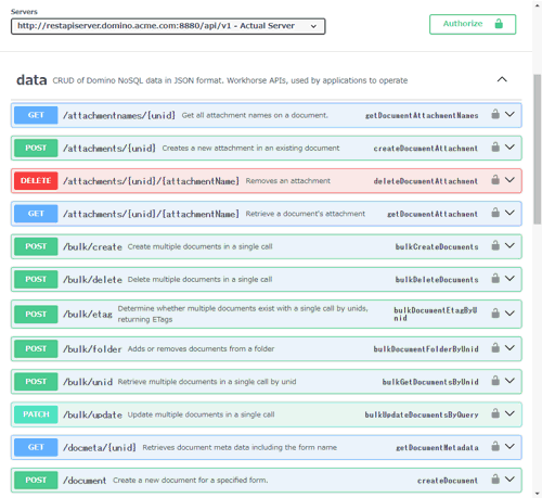 The HCL Domino REST API is developed in compliance with OpenAPI, and its documentation is publicly available. You can access the details from the following screen.