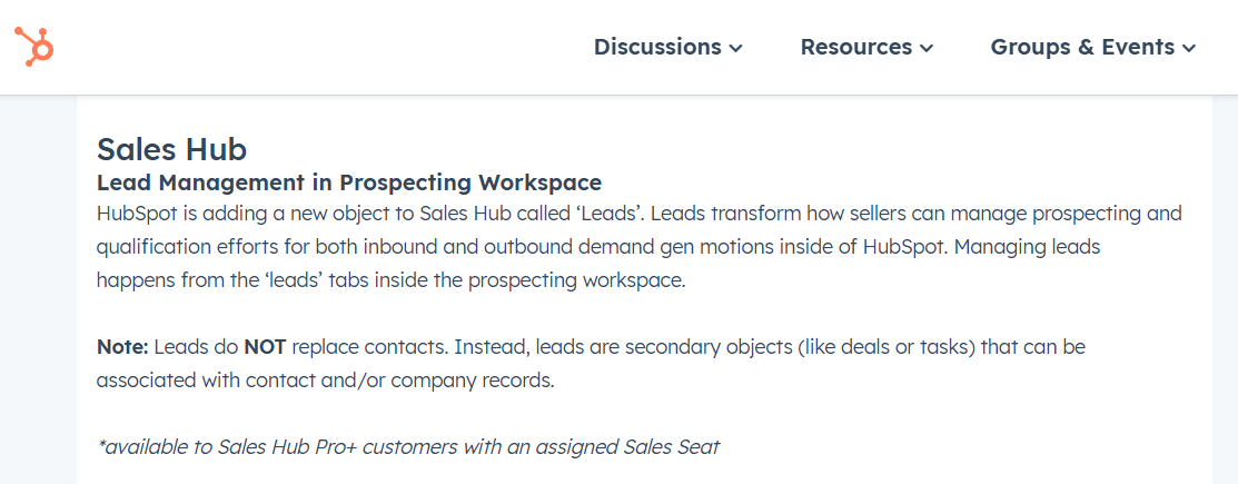 The Leads object is currently available in Sales Hub Professional and higher tiers. From a design perspective, it serves as an intermediary object that complements Contacts and Companies, facilitating clearer workflows for lead capture, qualification, and progression.