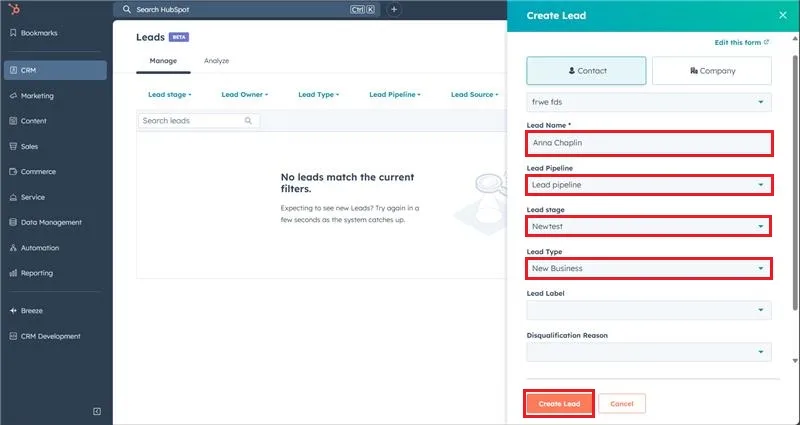 HubSpot Leads object