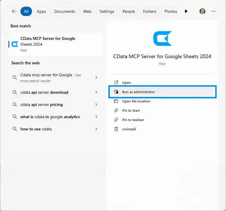 - Download and install the CData MCP Server for Google Sheets