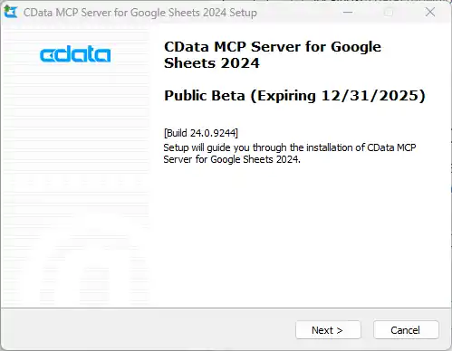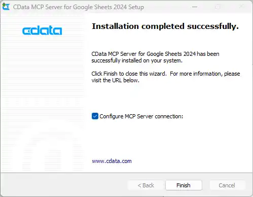 - After installation, the CData MCP Server configuration wizard should open automatically.