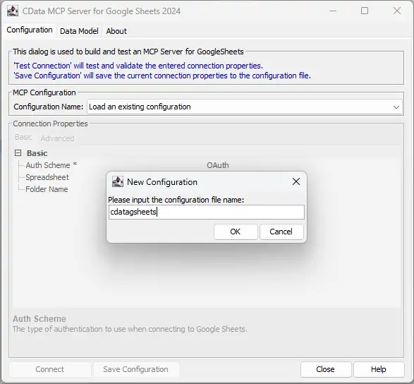 - Name the configuration (e.g. "cdatagsheets") and click "OK."