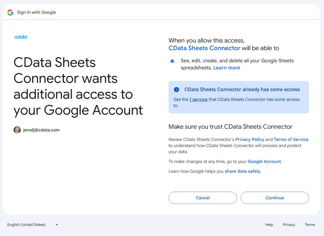 - Configure the connection to Google Sheets