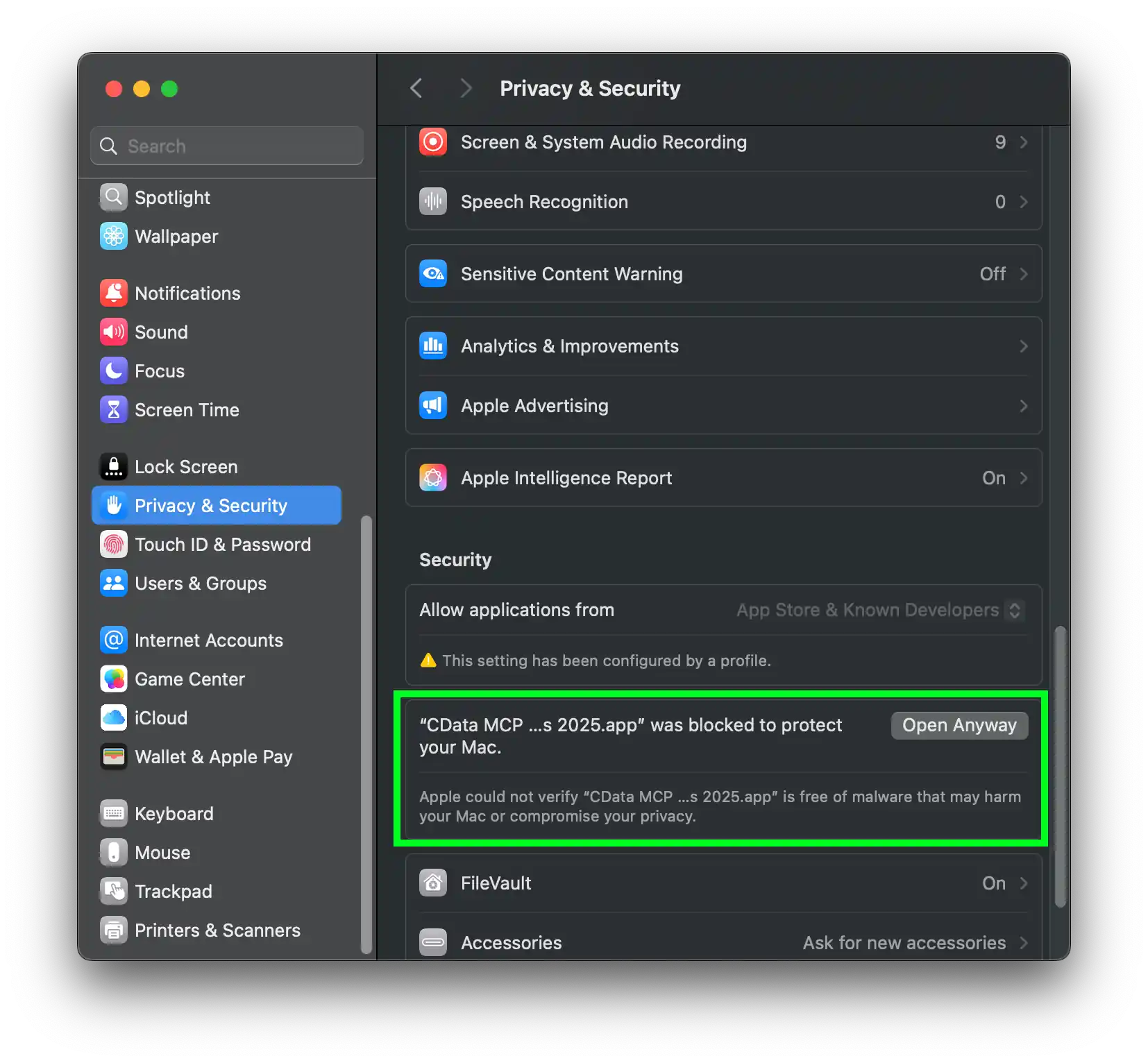 - Scroll down to the "Security" section and click "Open Anyway"