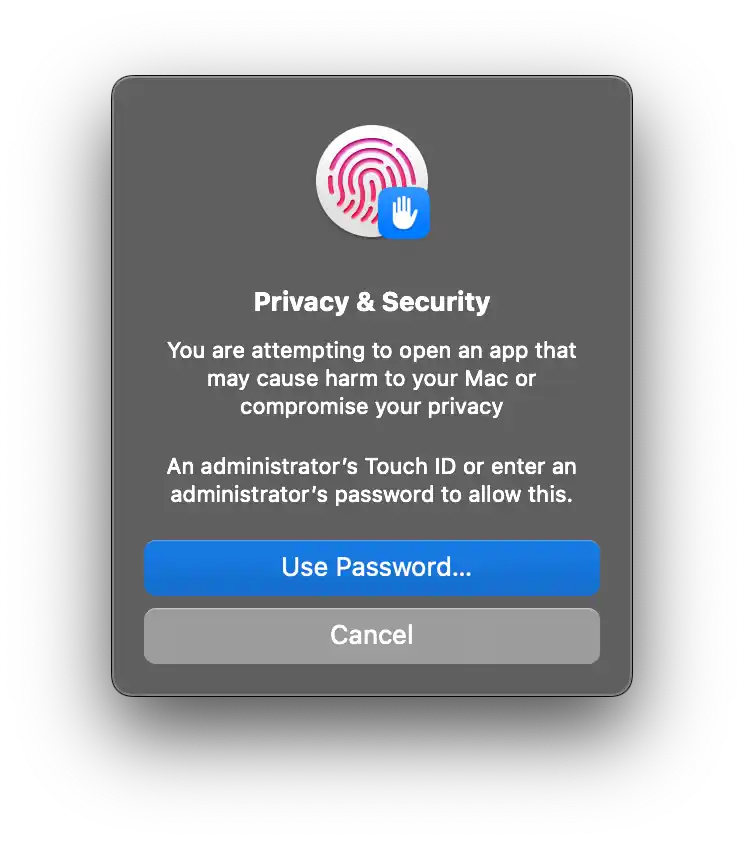 - Authorize the installation (passkey or password).