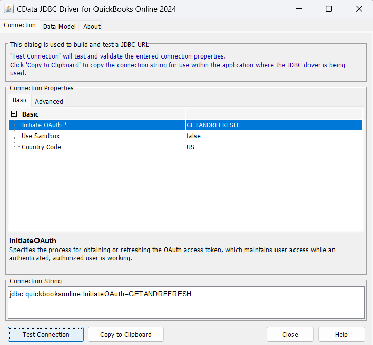 jdbc:quickbooksonline:InitiateOAuth=GETANDREFRESH;