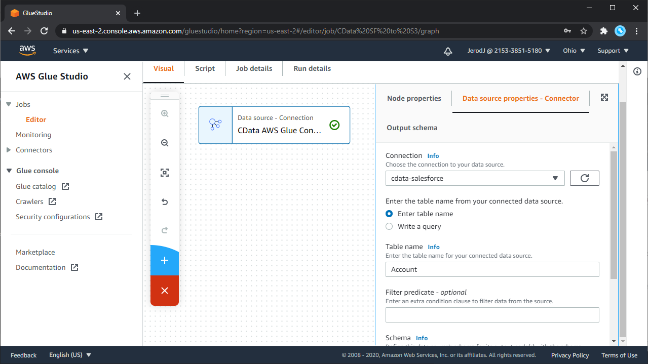 Activate the CData Glue Connector for Salesforce in Glue Studio