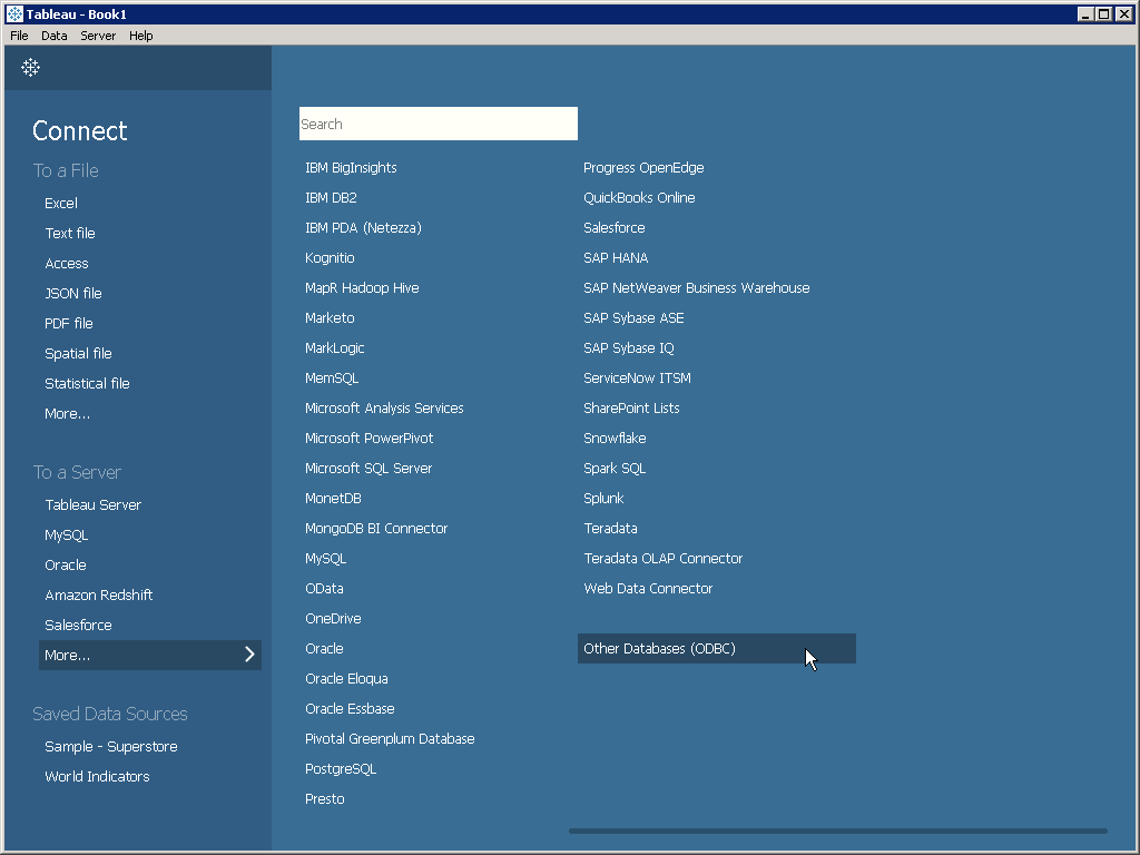 Tableau Desktop 10.3 includes native support for working with data in ODBC data sources. With the CData Software ODBC Driver for Salesforce, you get ODBC connectivity to Salesforce. The steps below describe the process of connecting to your Salesforce data in Tableau using the CData ODBC driver.