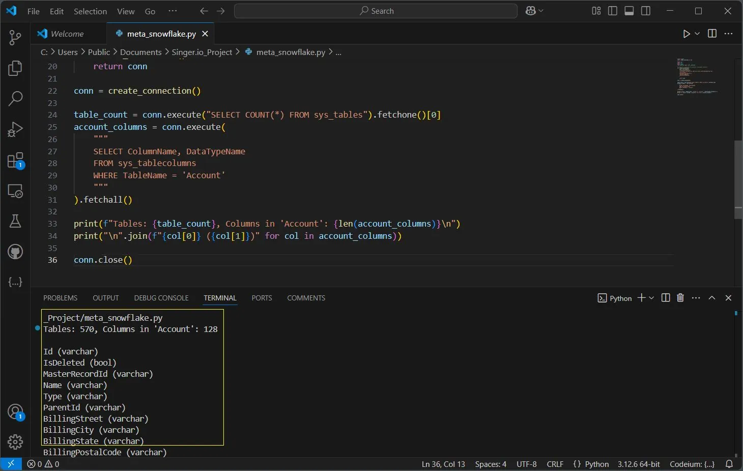 - In your project folder, create a new Python file named meta_snowflake.py, and open the file.
