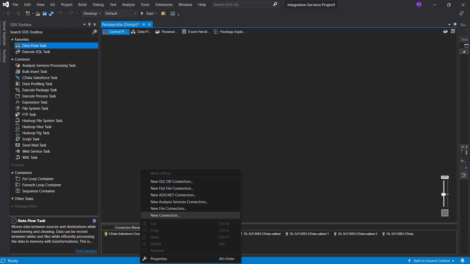 First, download and install the SSIS Components from the CData website: https://www.cdata.com/drivers/salesforce/download/ssis/