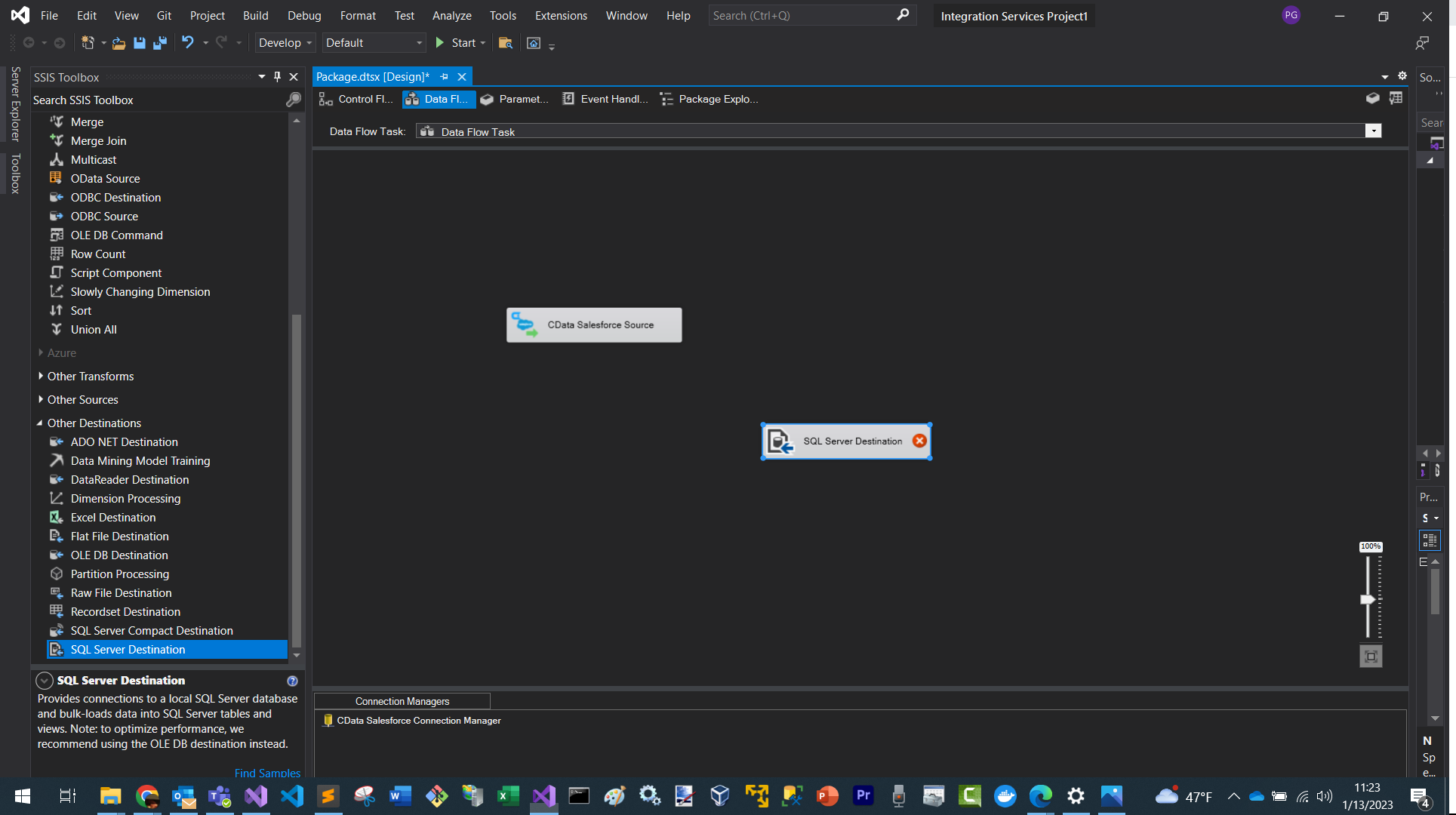 At this point you have created a data flow task for replicating your Salesforce data to a SQL Server database!