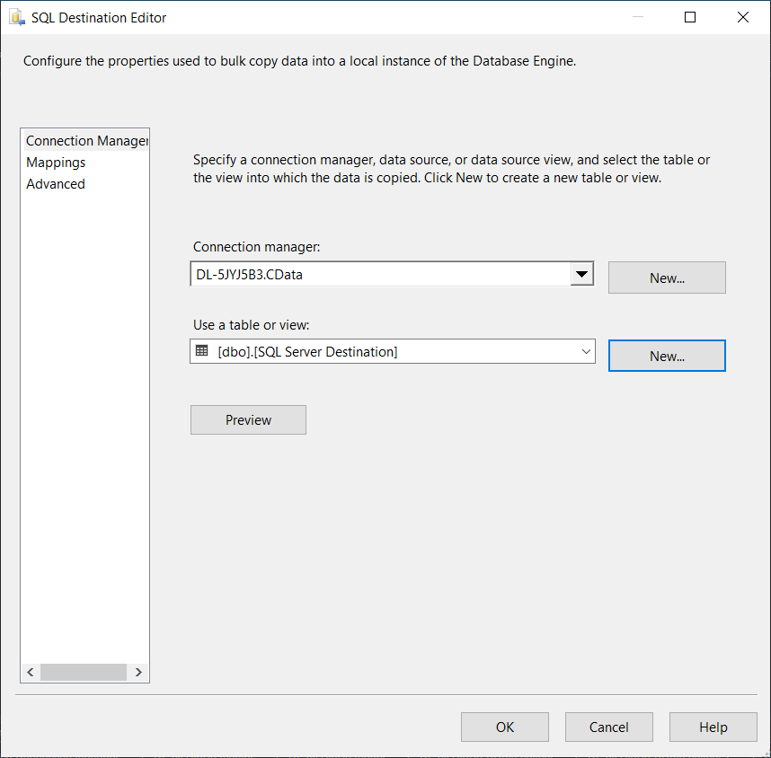 Next, drag a SQL Server destination component into the task.