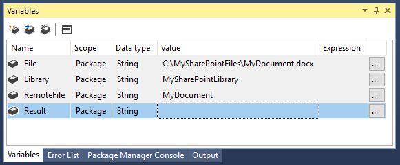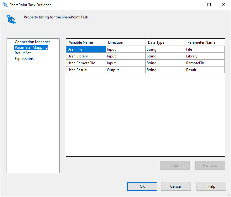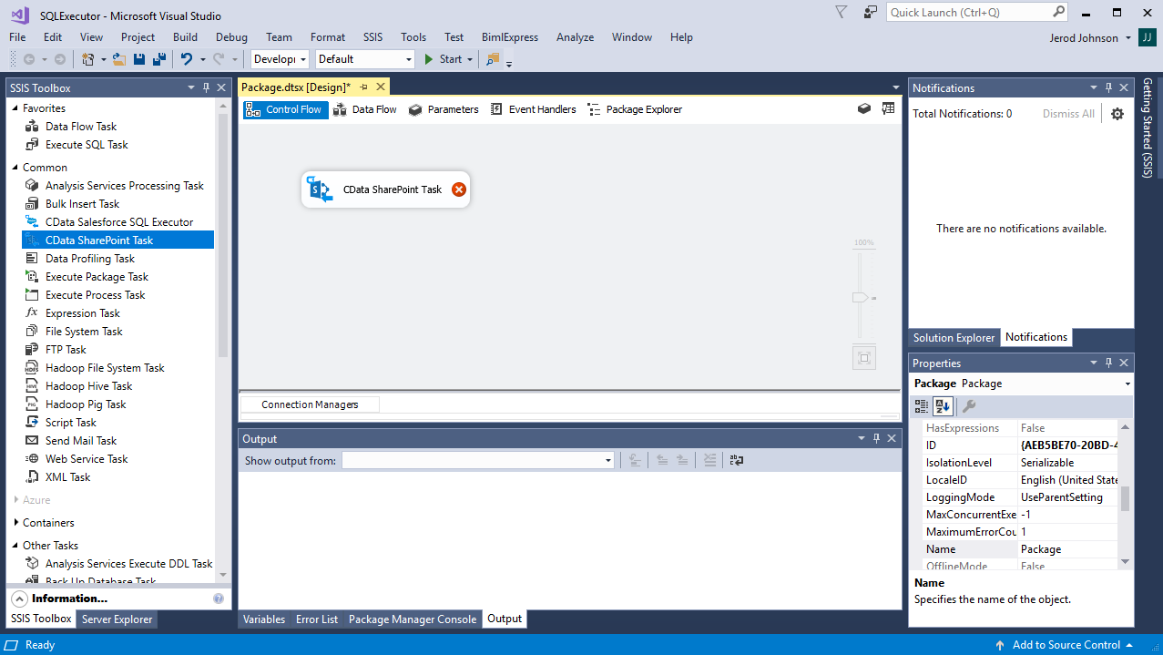 To quickly get started executing SharePoint API operations within SQL Server Integration Services, download the fully functional sample package. Before running the demo, you will need to change your connection details in the 'Connection Manager' and edit the values for the package variables.