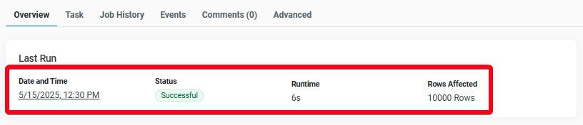 When the scheduled time arrived, the replication from the staging area to the target system was executed. Since the change data had already been captured, the job completed in a mere 6 seconds.