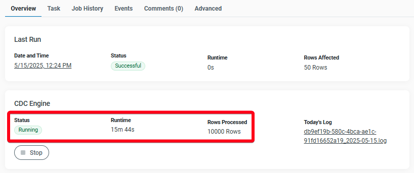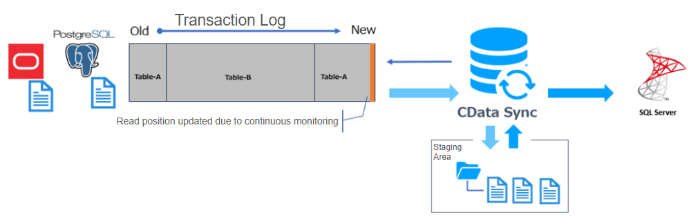 The Enhanced Change Data Capture (CDC) feature for jobs in Sync enables you to capture changes in real time. The modified data captured in real time is first stored as a file in the staging area of CData Sync. The mechanism for capturing changes is the CDC engine, explained in greater detail in the Help documentation on the CData Sync page.