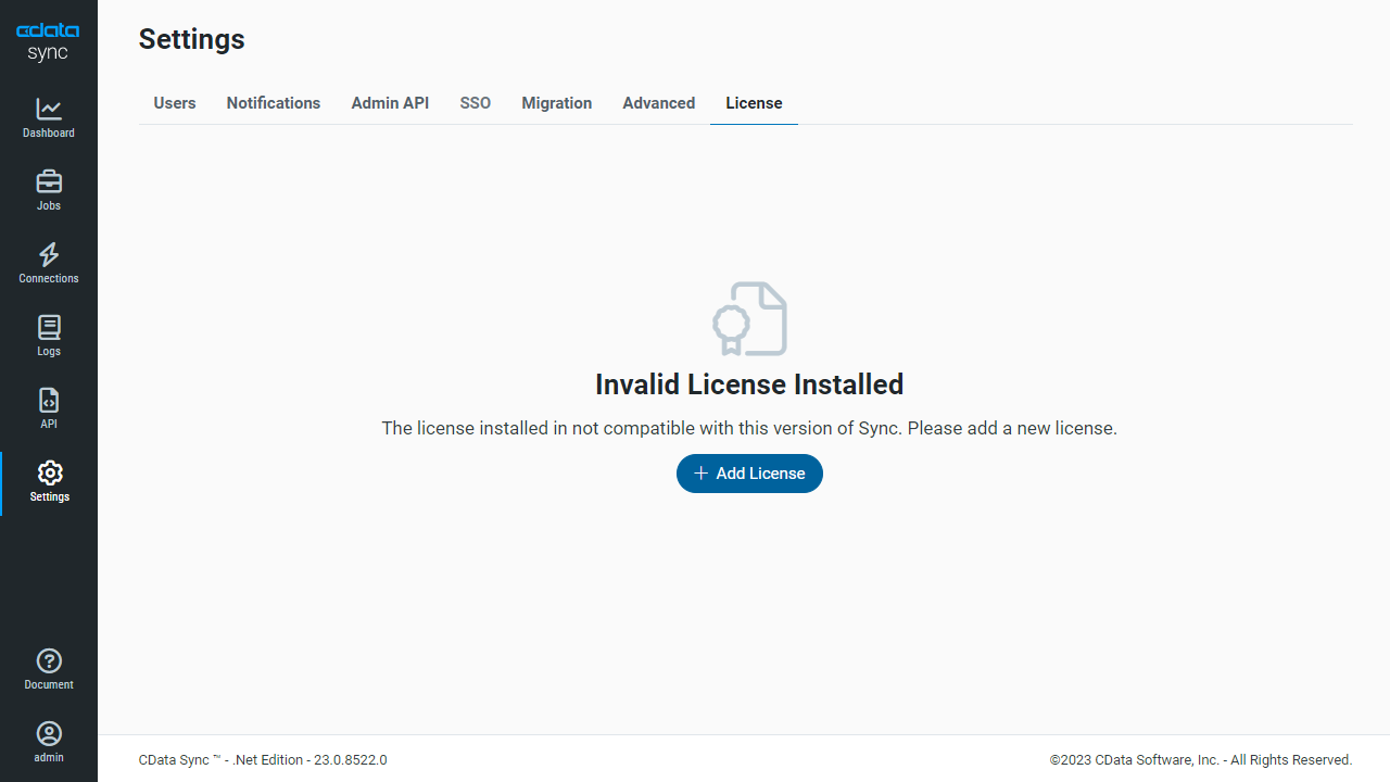 - Next, install CData Sync. The login page should automatically open in the browser after installation completes. If not, navigate to the login page in your browser (localhost:8019, by default).