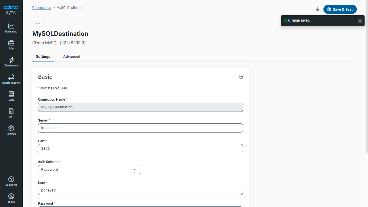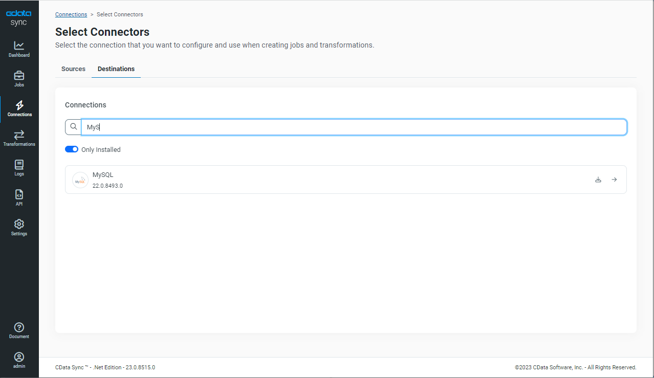 - Next, go back to the main Connections page and select a Destination. We use MySQL here.