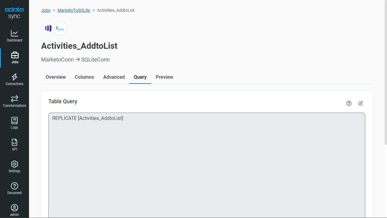 Follow the steps below to replicate Marketo Activities to SQLite. Replicating Marketo to a database consists of the following four basic steps: