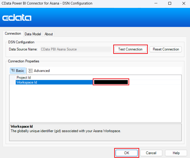 With the CData Drivers' built-in OAuth authentication, setting up the connection is simple—no need for manual token retrieval. Just retrieve your unique Workspace ID or “gid" from Asana's API, test the connection, and configure the DSN (Data Source Name).
