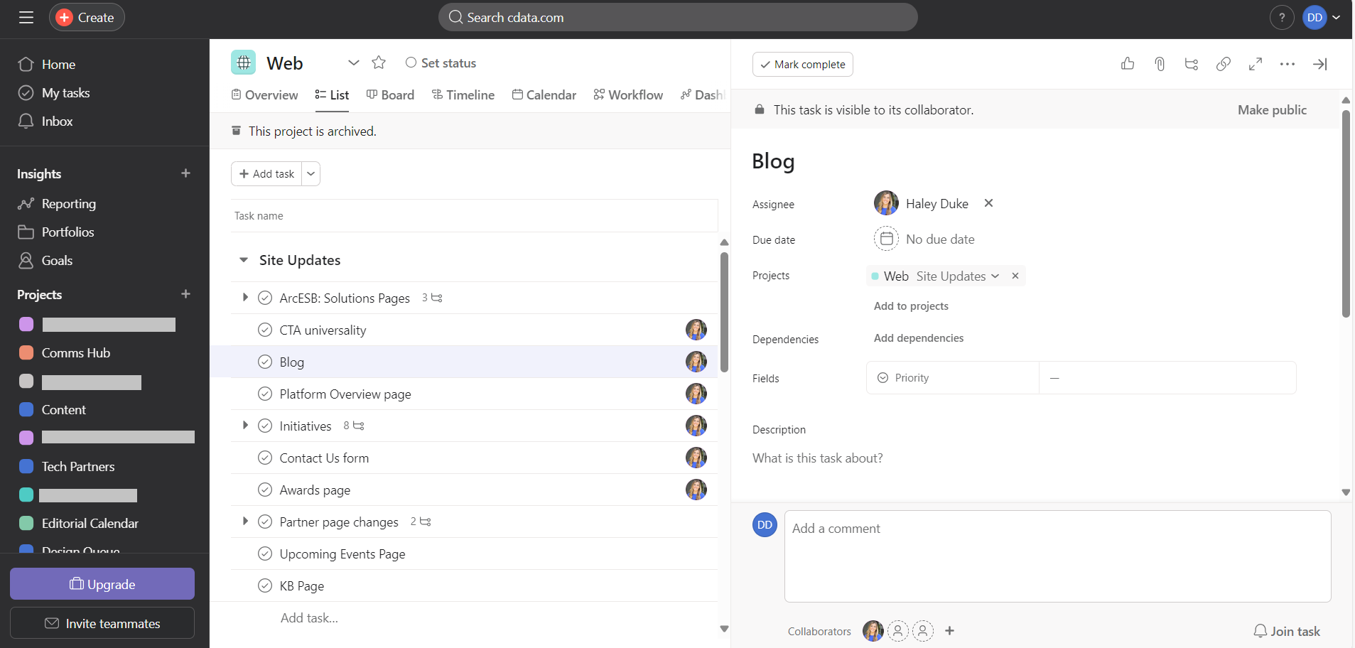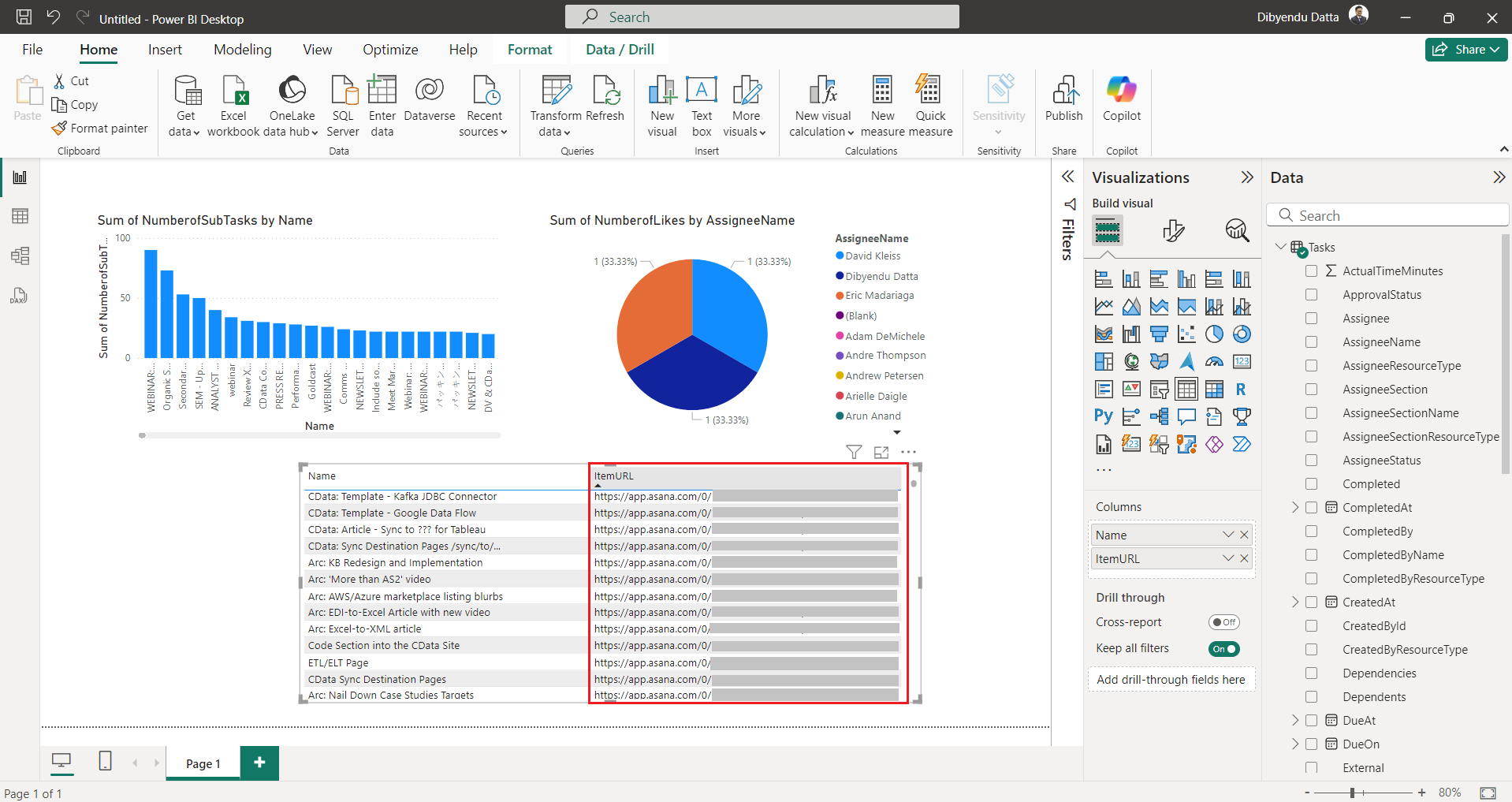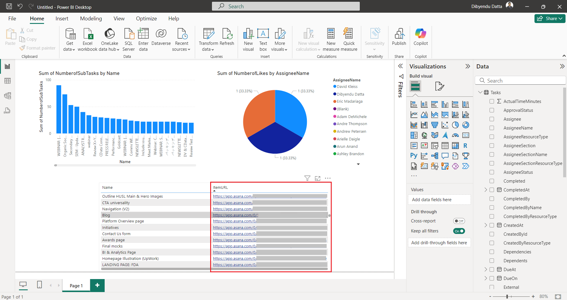 Now, click any task link in the ItemURL column of the Asana report you just created in Power BI.