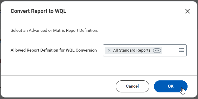 In Workday you can use the "Convert Report to WQL" task to return a WQL query that is used to return the same data as the report itself. Below are the steps to run the task in Workday: