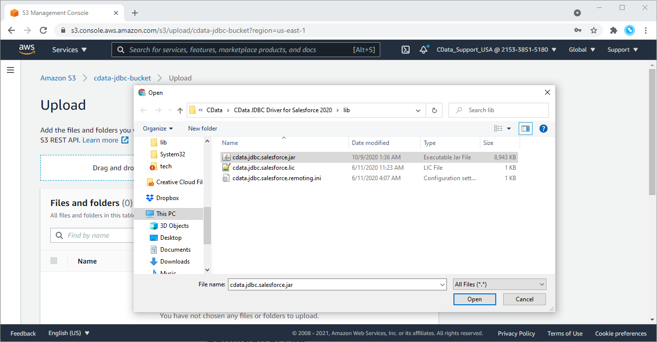 - Select the JAR file (e.g. cdata.jdbc.salesforce.jar) found in the lib directory in the installation location for the driver