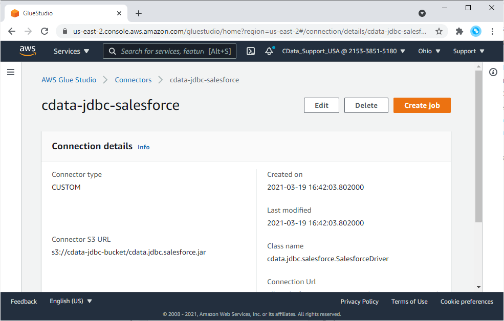 To use a CData JDBC Driver in AWS Glue Studio, you need to upload the driver to Amazon S3, create a custom connector & connection, and create a Glue Job.