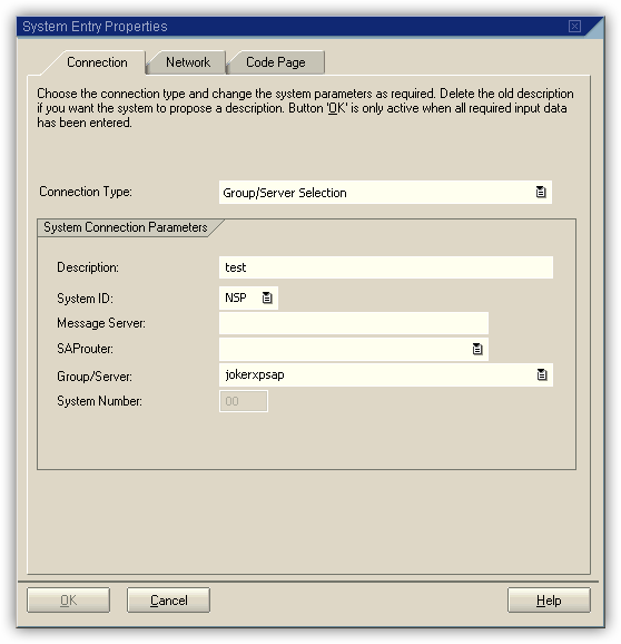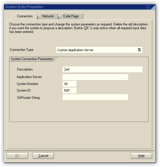 To be authorized to connect to the SAP system, the system administrator will need to provide several additional values that are defined in the System Entry Properties dialog.